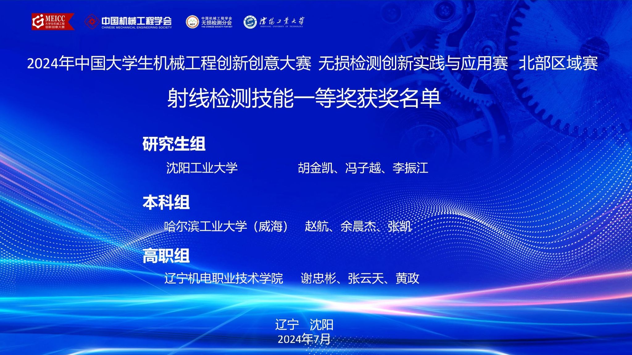 2024年7月24日至7月27日,由中国机械工程学会主办,沈阳工业大学承办的全国无损检测创新实践与应用赛北部区域赛圆满落下帷幕。来自北部十省多所高校的研究生、本科生及高职学生共134支队伍参赛,本次赛事设射线检测、超声检测、渗透检测三个赛项,我校理化测试与质检技术专业2022级和2023级学生共计6支队伍参赛。