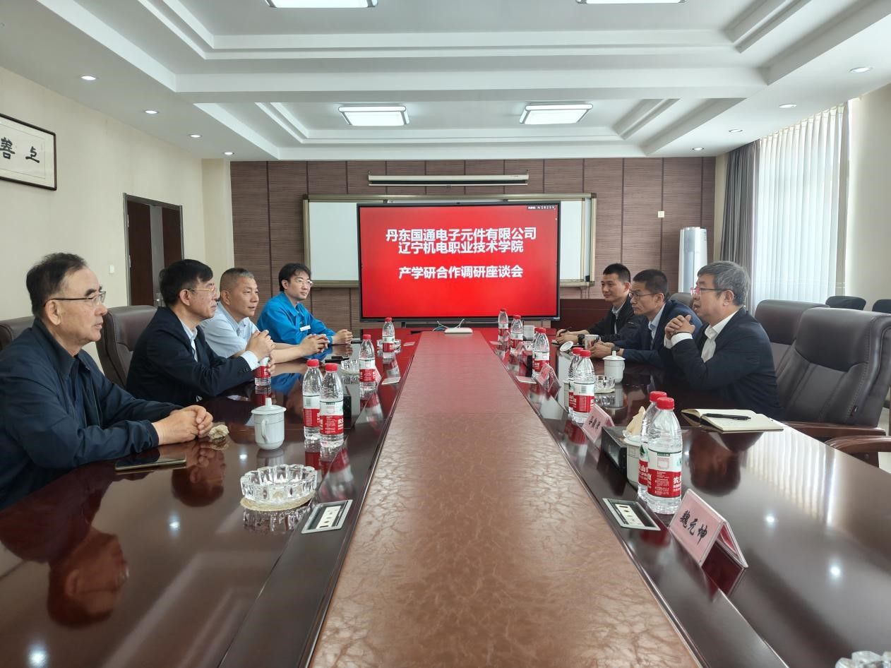 5月30日上午,学校党委书记曲壮凯一行赴丹东国通电子元件有限公司调研走访。丹东国通电子元件有限公司董事长刘文磊接待我校调研组一行,双方就进一步开展人才培养、学生参与企业生产实践、企业产线数字化升级改造科研攻关等合作项目达成共识。